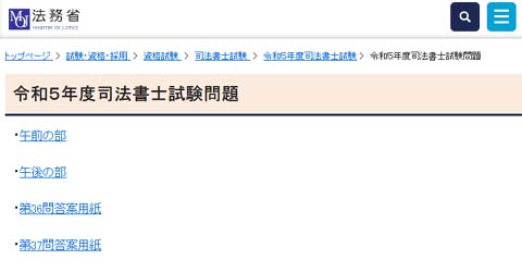 なお、法務省の司法書士試験の公式サイトにおいて、過去5年間に実施された試験問題がPDFファイルで公開されています。