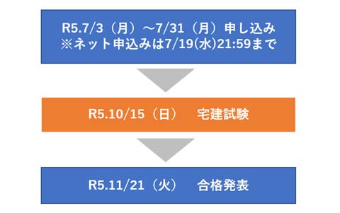 2023年度(令和5年度)の宅建試験は、下記の日程で実施されます。(6月2日官報公告済み)