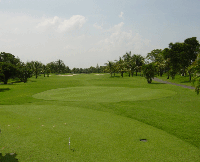 南国ってムードのホールです。午前中は46でしたが、後半5ホール目でスコール。びしょ濡れで止めてしまいました。ホテルから着替え無しで来たから、濡れたままでホテルまで帰りました。 |
