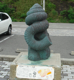 淡路島のアンモナイトの化石はこんなに大きいらしい。そこから土生港へ沼島(ぬしま)が見えてきました。 |