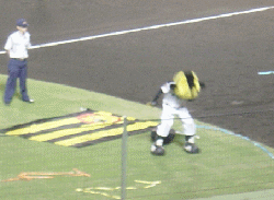 あ〜残念!この風船の向こうで金本選手がウィニングボールキャッチしてるのに |