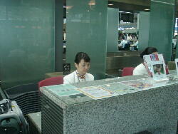 南大門市場へ行く途中デパートのカフェで休憩。野球場の後にテントを張って店が開かれ真ん中は駐車場。その後南大門市場へ |