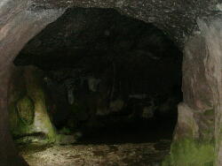 最初のクレーターDEVIL’S HOME(悪魔の家)で、壁面が黄色く見えているのは、硫黄水晶で硫黄ガスが冷却したため出来たそうです。 |