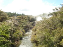 ニュージーランドー最大の温泉華台地で、1886年に発生したタラウェラ山の噴火で、ピンクアンドホワイト台地が崩壊してできました。