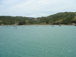 ワイヘキ島の湾にはヨットが停泊しています。 |