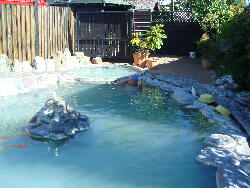 ロトルア市内の南にあるTerume Resortに赤いカローラで到着。日本人が経営する庭園露天風呂があるモーテルです。 |