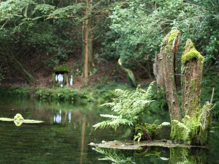 駐車場のそばに水を汲むところがありますが, そこから森のほうへ数分歩いた所に写真のような場所があります。 こちらを見ないとこの水源の美しさはわかりません。