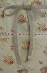 肩紐は片側結びですので、調整していただけます。上の写真で47cmぐらいです。