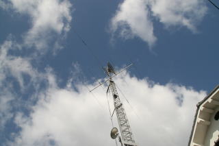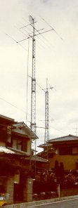| 旧アンテナの説明 奥が12mHiの自立タワー 手前が17mHiのクランクアップタワー 1997年撮影 現在はクランクアップのみで運営中 クランクアップ2011.9撤去 2009年は7MHzと50MHzを中心に アマチュア無線再開 SSTVも運用中(7033) SSTVは現在QRX 2018年からはFT8が主 |