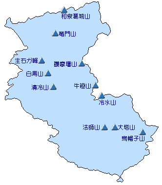 山頂周辺だけが雑木またはスギやヒノキという得意な風景を形造っている。 |
