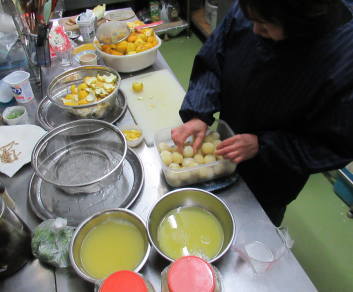この前沢山の柚子を頂き、今日は早速ゆずシャーベットの仕込みです。