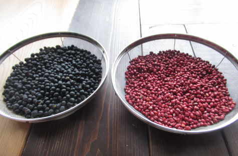 12/14 この秋に穫れた小豆、黒豆、天日にあて皮はがし、選別が出来ました。