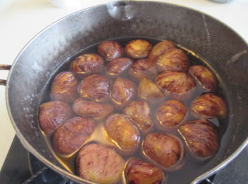 一年ぶりの作業です、例年より丁寧に渋皮を丁寧に除き、砂糖を加えて煮込み出来上がりです。