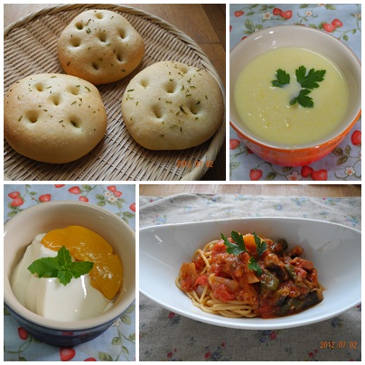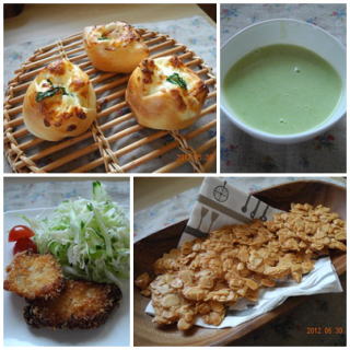 7月 ピザパン(トマト・照り焼き) ヴィシソワーズ ミックスビーンズサラダ