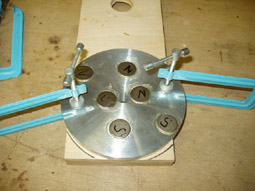 直径22mmの超強力なネオジム磁石6個をたっぷりのエポキシで正確にはめ込み、しっかり接着。指を挟むと切れます。 |