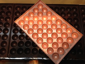 武蔵の銅板は大阪は千日前道具屋筋の専門店において特注で製作されたもので、1枚で40個のたこ焼きを作ることができます。各スタッフがこの鉄板2枚を担当して、一度にたこ焼き80個を焼くようにしていますが、 これを普通にゆっくり焼くと、80個のたこ焼きを返すのが間に合わず、焦がしてしまうところを、二本の千枚通しを使い、高速で焼き上げるところが、武蔵のワザであります。
