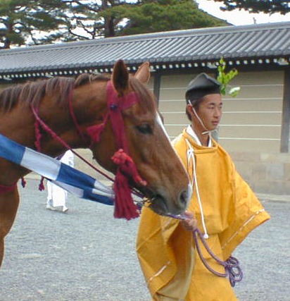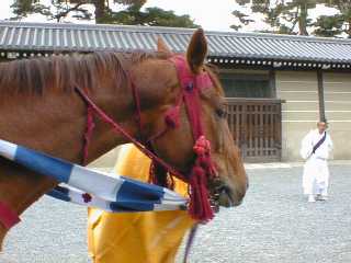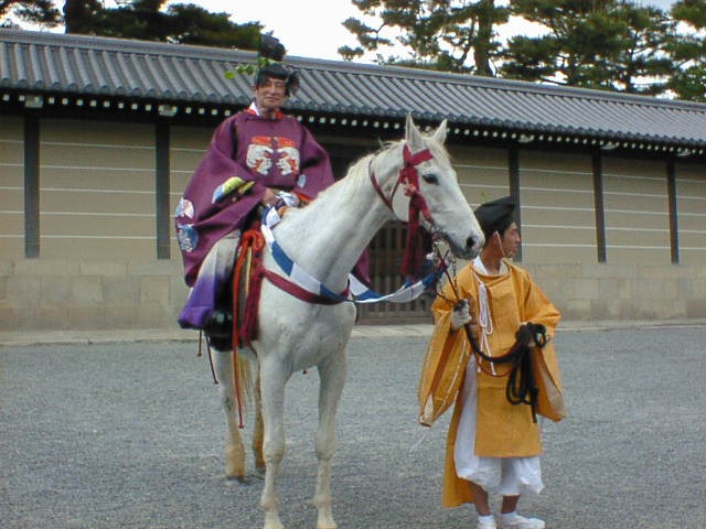 葵祭に行ってきました。 優雅な祭でございます。 ちょっと画像が悪いのが、残念ですが・・・ 白馬。某将軍を彷彿させる・・・ 馬がかわいくって、つい何枚もとってしまいました。 右は、不思議な靴だなぁと思って。 頭のところに見える、緑のが、葵です。 なんばぁつぅへ→