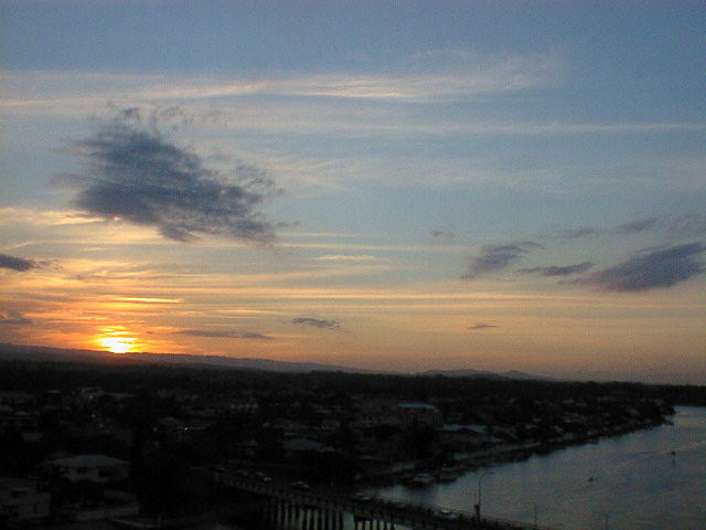 地平線の向こうに夕日が沈む 美しきシドニーの夕暮れ