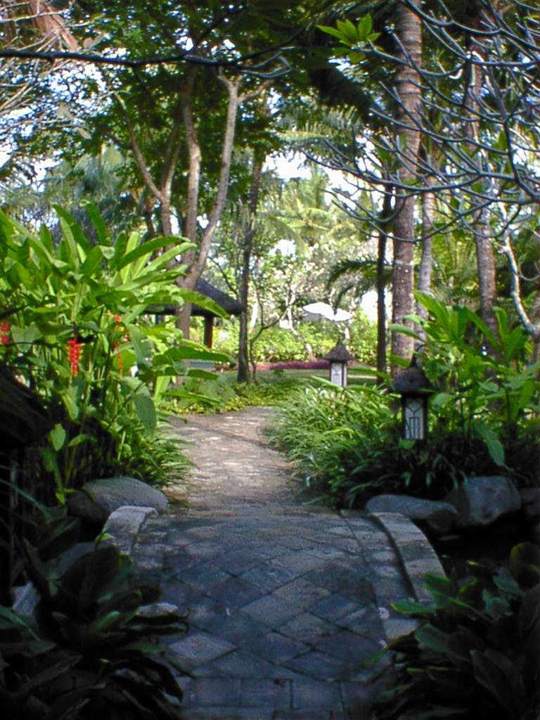 ホテルの庭を、朝散歩♪緑がきらきら光ってるのだ〜