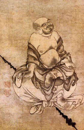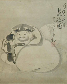 布袋様は 中国に実在したとされる禅宗のお坊さんです。 大きなお腹をされていて、 いつも布の袋を背負っていたので 布袋さんと呼ばれるようになったそうで 本名は、釈契此(しゃくかいし)さんなのだそうです。 布袋様は特定のお寺には住むことがなく、 ほうぼうを放浪されていたそうです。 お坊さんであるにもかかわらず、 生臭ものであっても構わず施しを受け それらを袋に入れていたといいます。 雪の日に野宿をして路傍に寝ていた 布袋様自身や彼の周りにだけ不思議と雪が積もらなかったという逸話も残っています。 法華宗の神様ではありませんが 円常院さんにもお祀りされています。 |
