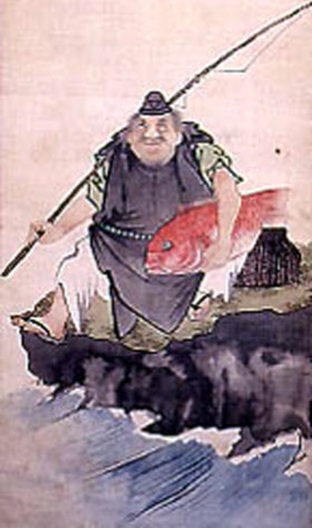 ゑびす様は仏教の神様ではなく日本の民俗信仰の神様で、 もともとは外海からやってきた人を指す言葉だそうです。 漢字では夷、戎、胡、蛭子、恵比須、恵比寿、恵美須などと書きます。 伊邪那岐、伊邪那美の最初の子供であった蛭子命 もしくは大国主命(大黒様)の子である事代主神とされることが多いようです。 そのため同じゑびす様を祀る神社であっても場所によって御祭神は 異なっているそうです。 海の向こうからやってくる水の神様として漁師さんたちの間で信仰を集めていました。 四国や隠岐などでは漁業に使う網の浮きに神様が宿り正月などにお祭をする行事が あるそうですが、その浮きのことを“ゑびすあば”と呼んでいるらしいです。 また、九州南部には漁期の初めに海中からゑびす様の御神体とするための 石を拾ってくるという風習があるそうです。 |