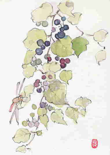 野ブドウ探しに法輪寺まで出かけました。偶然、とまった赤トンボ・・・ |