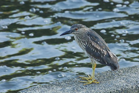 ゴイサギの幼鳥ですが親鳥とは全く違った羽模様をしており、