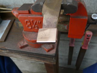 次は平地の部分を叩いて二枚とも平に整形します その後万力に挟み二枚同時に真直ぐに整形します