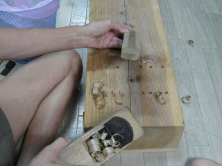 こうすると中に削り屑が殆ど入りません 鎬筋の線がカンナで消えましたので再度マジックで書き