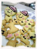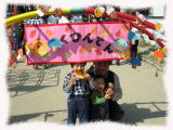 それからハンバーガーにジュース、紙トンボ、エプロン、帽子などをすばやく買っていた。みんなお友達や先生と一緒にのんびりお買い物してるのに単独行動でお買い物しているのりぽん。「何で?」って聞くと、「だってお買い物はママみたいにパッパッっとしないとあかんやん」だって・・・(-"-)子は親の鏡か・・・ |
