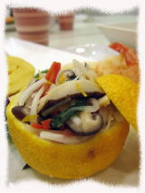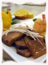 ★海老のしんびき粉揚げ ★煮なますの柚子釜 ★鴨ロース ★伊達巻き ★干し柿のコンポート