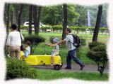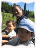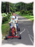 のりぽん、よしぽんでハンドルの取り合いをするのを横目に一生懸命ペダルをこぐのはパパ。