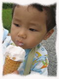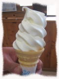 山頂のロープウェイ乗り場の前で、ここでしか食べられないと言われたのでこけももソフトをパクリ。疲れがとれる〜ぅ♪