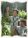 ++おばあちゃんに習ったトンボの捕り方を実践中。怖くてトンボを触れず・・・++