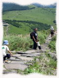 山頂は坪庭になっていて珍しい高山植物などが生息。パパがよしぽんを抱っこして、私がバギーカーを担いで坪庭を1週起伏の激しいところを回った(~_~;)