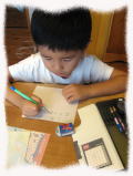 素焼きの好きな形の陶器を選んでそれを思い思いに絵付けをします。