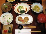 お昼ご飯を食べに11時前にレストランへ行ったけどどこも満席で、名物の猪汁は食べられず残念。おにぎりと唐揚げを買って車の中で昼食をとることに。