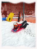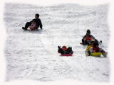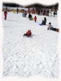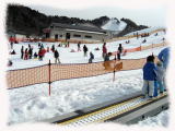 ここのスキー場はソリ専用ゲレンデがあり、ベルトコンベアーに乗ってゲレンデの上まで運んでくれるのがすごくありがたいのです。