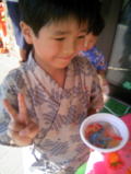 っとこんな会話をしながらもついてきてくれました。交換条件にかき氷とたこ焼きを食べさせることになったけど・・・(^^;)
