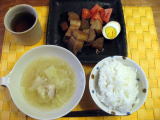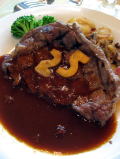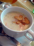 ・・・ステーキの上には25周年・・・スープのクラッカーもミッキー・・・チョコレートケーキを食べ続けるよしぽん・・・・・・・