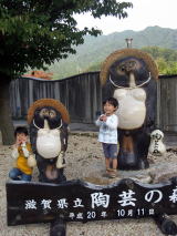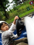 これちょっと子供には怖いみたい。昔の潜水艇を模した乗り物にのり海底へ沈んで行くんだけど、もちろん海底はガラス窓に映る映像だけどリアルすぎてのりぽんもよしぽんも海底でエンジンが止まるという設定に真面目に怖がってしまって腕にしがみついて離れません。「これ映像だよ」っというとのりぽんはキョロキョロして信じられないようです。