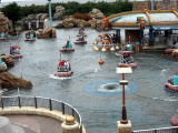 みんな雨にも負けずに雨合羽を来て、屋外の乗り物も乗ってます。アクアトピアは二人でゴムボートにのりクルクル回りながらすすむんですが、のりぽんがこれが最高に楽しかったと言ってました。
