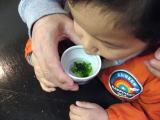 ++売店では新物の青さ海苔のお吸い物を試食 よしぽん「おかわり〜」++