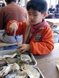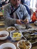 バットに大体15個ぐらいの牡蠣が盛られてきて、牡蠣ナイフもついているのでひたすら殻を開けて食べま〜す。おかわりすること5回。パパと二人で70個以上食べたことでしょう・・・うっぷ。だいたい40分ぐらい食べたところでギブアップです。これで今年は食べ収めで〜す。ちなみにのりぽん、よしぽんはお弁当を食べてましたよぉ。