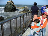 展望台よりさらに強い風が吹き荒れ、波のしぶきが飛び散り目が開けられないほど・・・(^_^;)よしぽん、パパにしがみついてます。 夫婦岩を見た後、鳥羽の海の幸をお土産に買い帰ってきました。