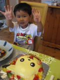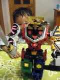 少し前に幼稚園で七夕の笹飾りの願い事に「よっちゃん、『おおきいおもちゃを買ってもらいたい』っとかいたらしいよ」っという情報を聞き今はまっているシンケンオーをプレゼントにしました。