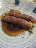 ステーキにしようと思ったのに、どこのお肉屋さんも今日は定休日でした。もっと考えておけばよかったm(__)mしょうがないのでスーパーのちょっといいすき焼き肉で野菜巻きを作りました。ステーキソースでいただきます。
