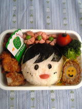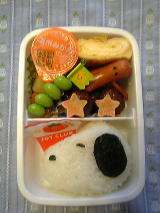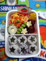 今週の金曜日は親子遠足の予定なので、晴れますように、おにぎりをてるてる坊主にしました。先生に「あんぱんまん?!」っと言われたそうですが・・・。 |