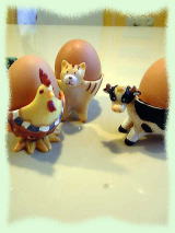 和歌山マリーナシティー内のポルトヨーロッパへ行ったときに、中にあったショップ『園芸茶房』で見つけたエッグスタンドです。暑い遊園地で見つけたお店は外に花のショップがあり、中は観葉植物やそれを飾るガラスの花器やお庭用のオーナメントなどを販売していました。このエッグスタンドも苔玉を飾るための鉢として売られていたものです。あまりのかわいらしさと値段の安さにひかれて買ってしまいました。
