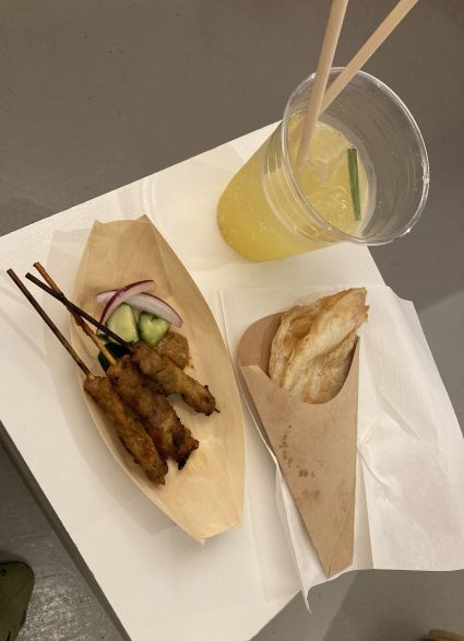 焼き鳥と、なんかパリパリしたお菓子とジュース